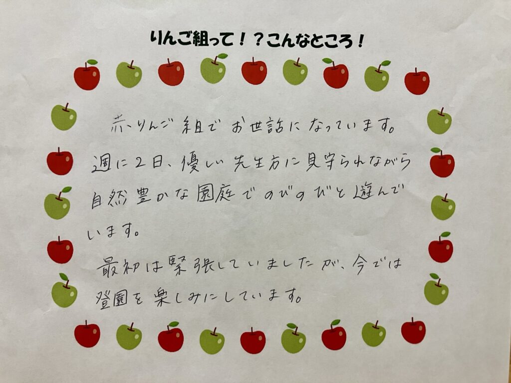お知らせ今年度、入会された保護者の方に「2歳児クラス(りんご組)」はどんなところ!?とお聞きしました。