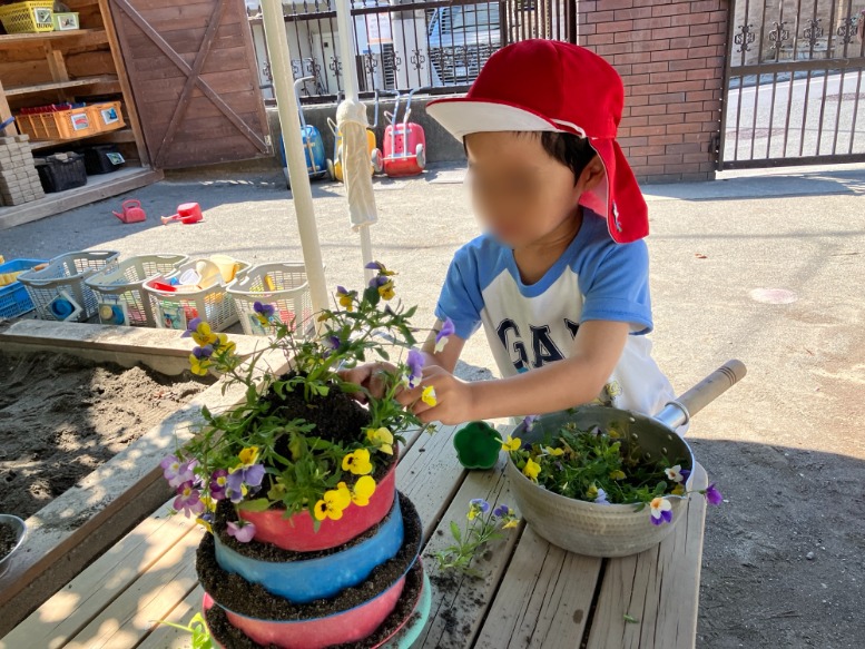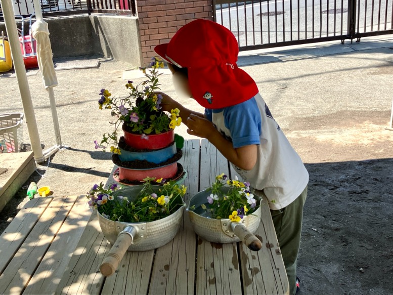 毎日の保育連休前、満開に咲き誇ったビオラを剪定しました✂️