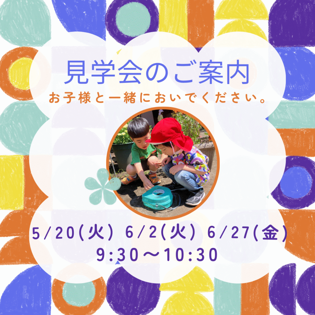 お知らせ入園対象者の見学会を行います。お子さんと一緒においでください。