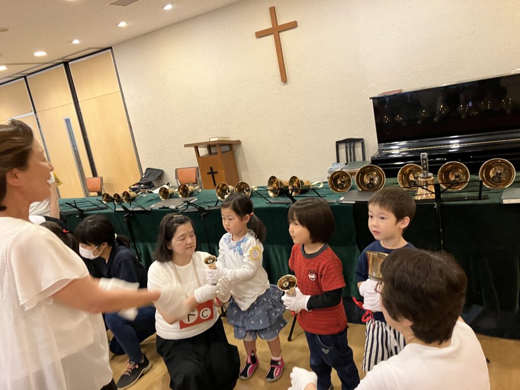 演奏を聴いた後には、子どもたちがハンドベルを鳴らす体験をしました🎵