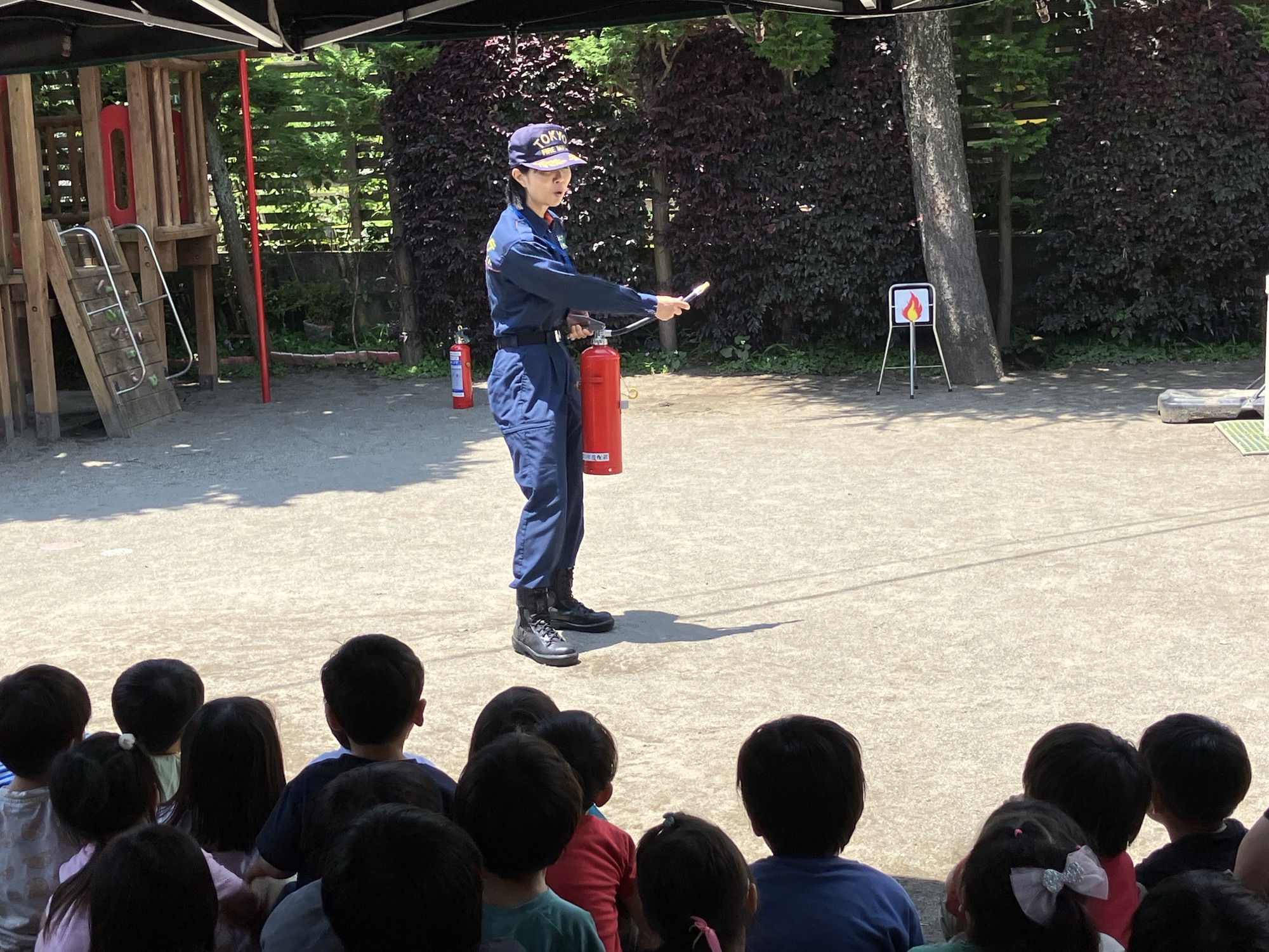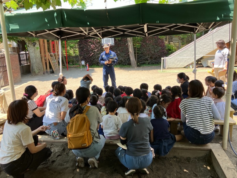 昨日は田園調布消防署のご指導を受け、自衛消防訓練を実施しました。子どもたちは、鼻と口を腕で覆いながら