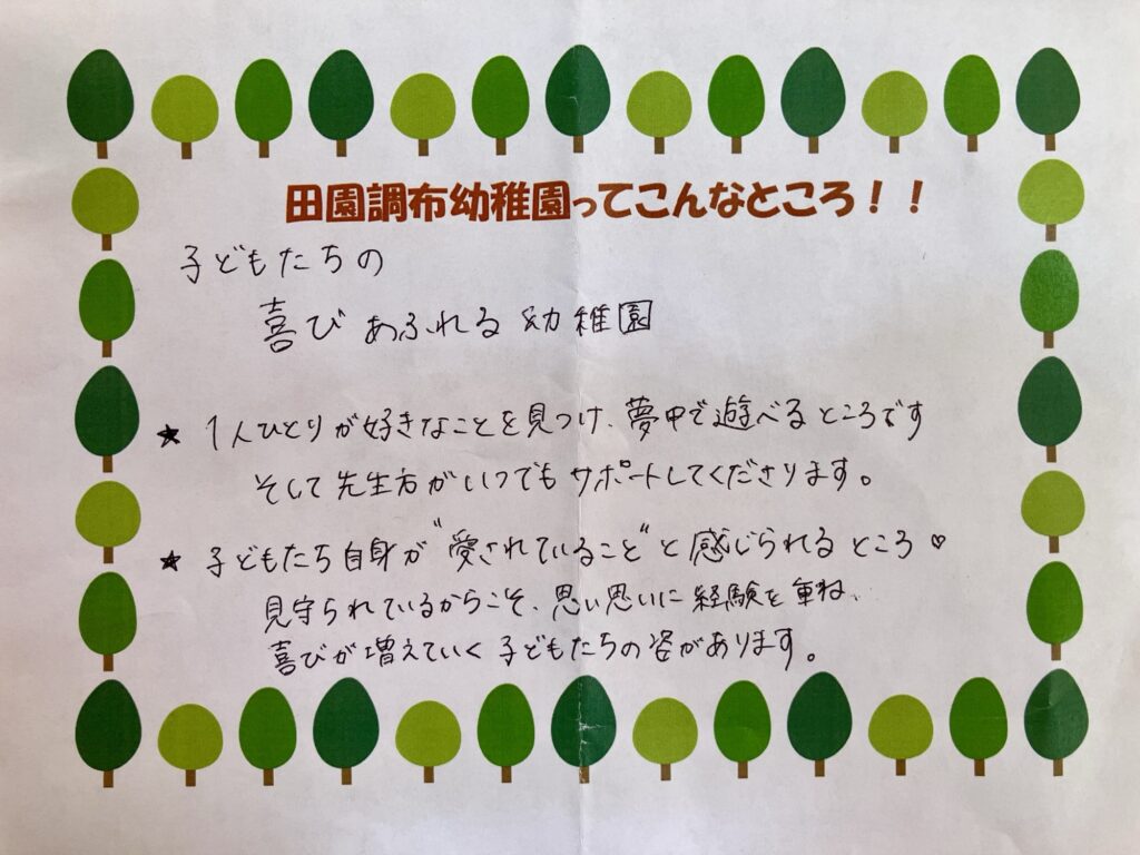2026年度入園を検討されている方、2歳児りんご組、満3歳児クラス(青りんご組)を検討されている方、プレ保育を探している方、ご参考にしていただければ嬉しいです。