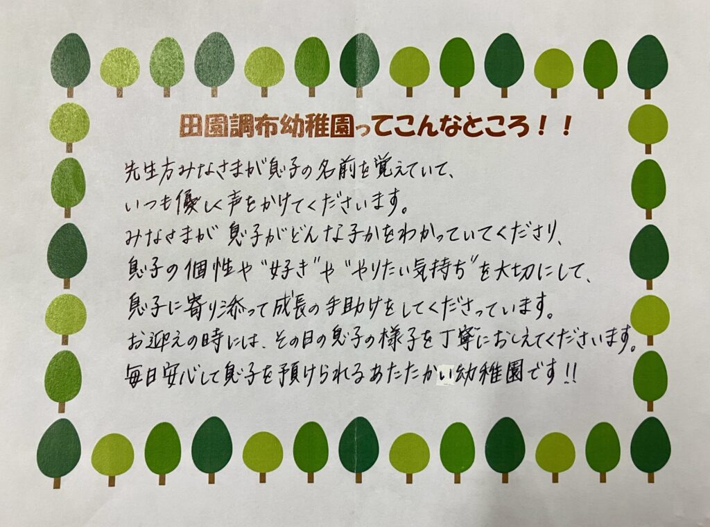 在園児の保護者の方に「田園調布幼稚園」はどんなところ!?とお聞きしました。