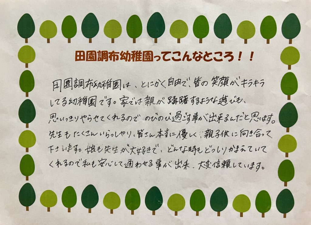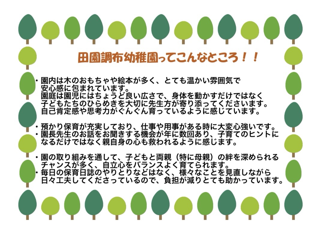 在園児の保護者の方に「田園調布幼稚園」はどんなところ!?とお聞きしました。