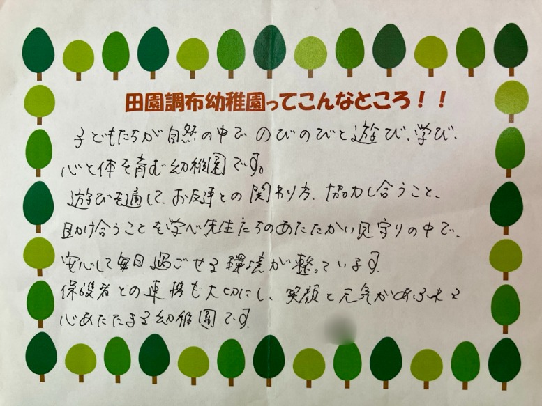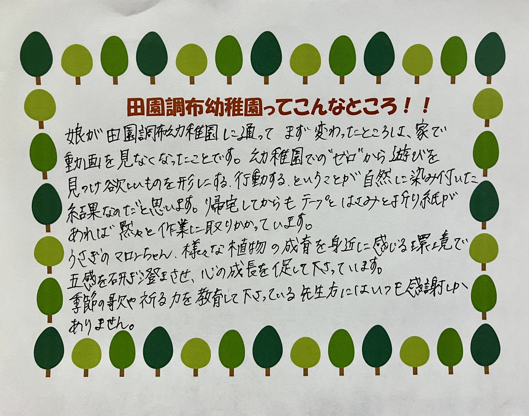 在園児の保護者の方に「田園調布幼稚園」はどんなところ!?とお聞きしました。