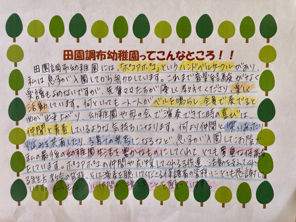 在園児の保護者の方に「田園調布幼稚園」はどんなところ!?とお聞きしました。