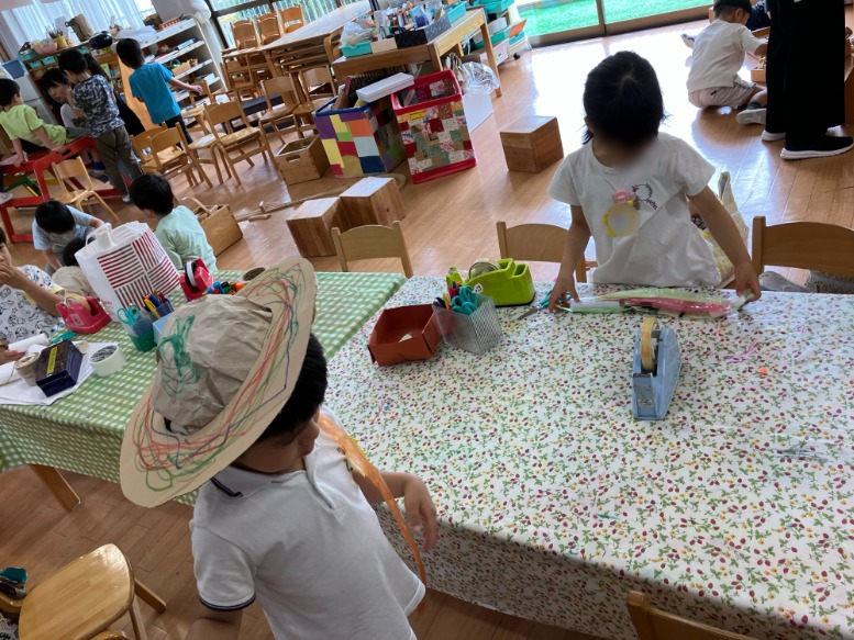 年長組は7月のキャンプ(お泊まり保育)に向けて準備が始まりました。キャンプソングの歌声も響いています🎵