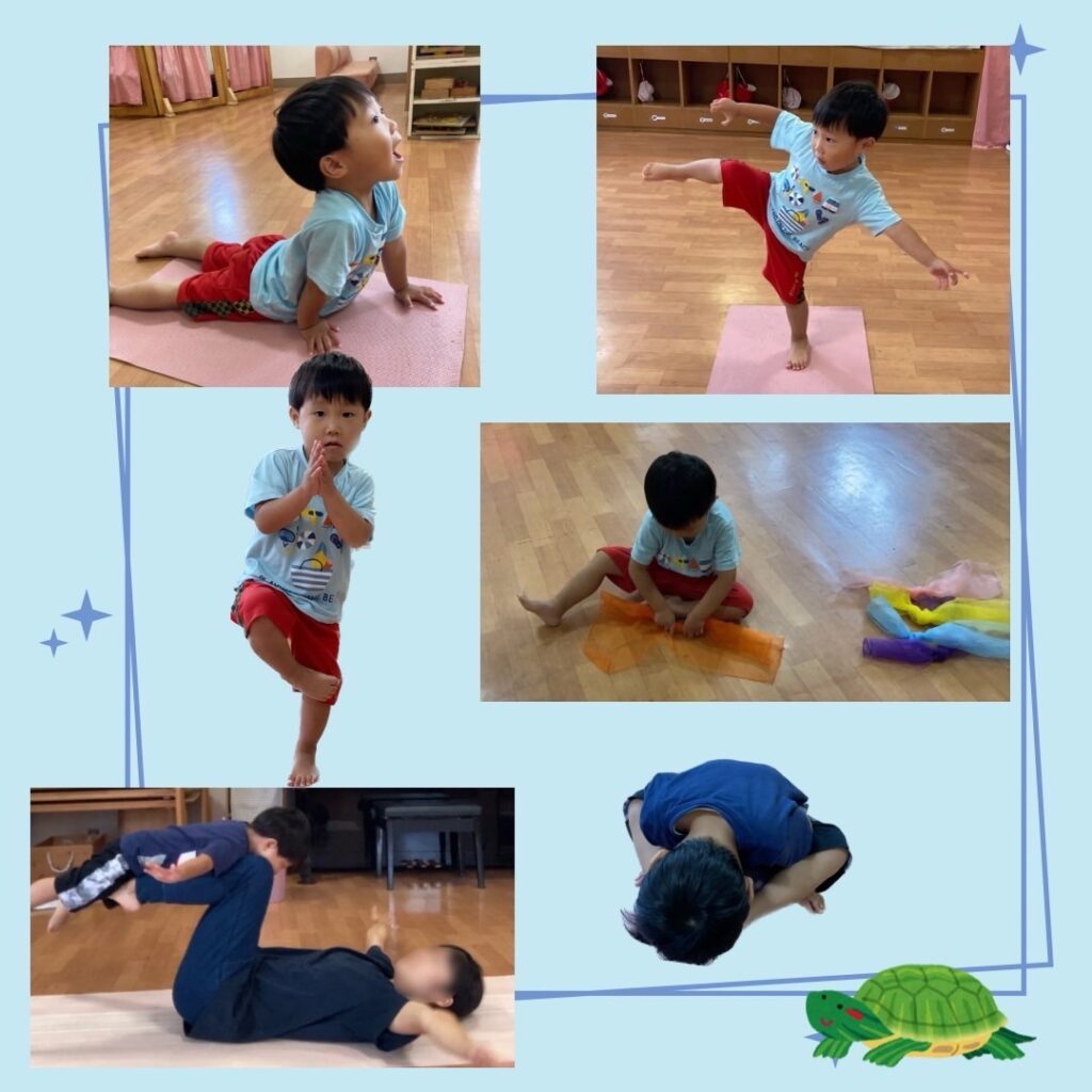 歌に合わせたヨガポーズや、大好きなウルトラマンのポーズを考えて教えてくれました✨