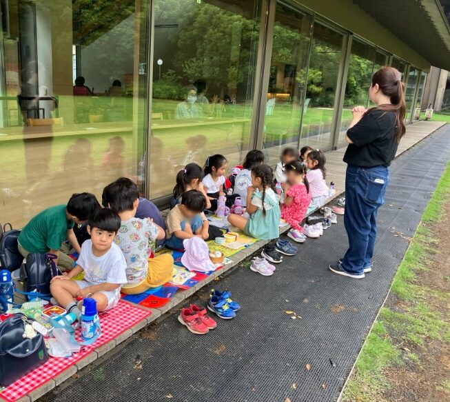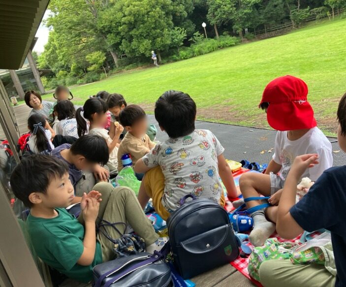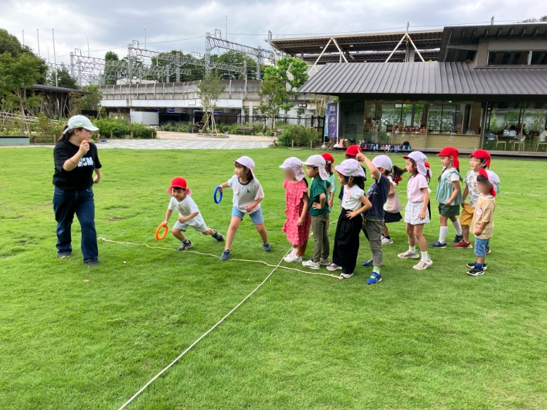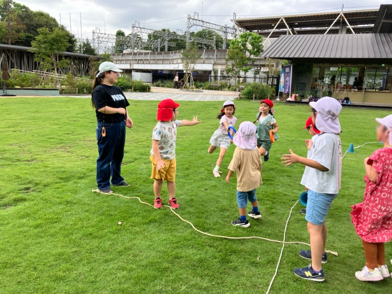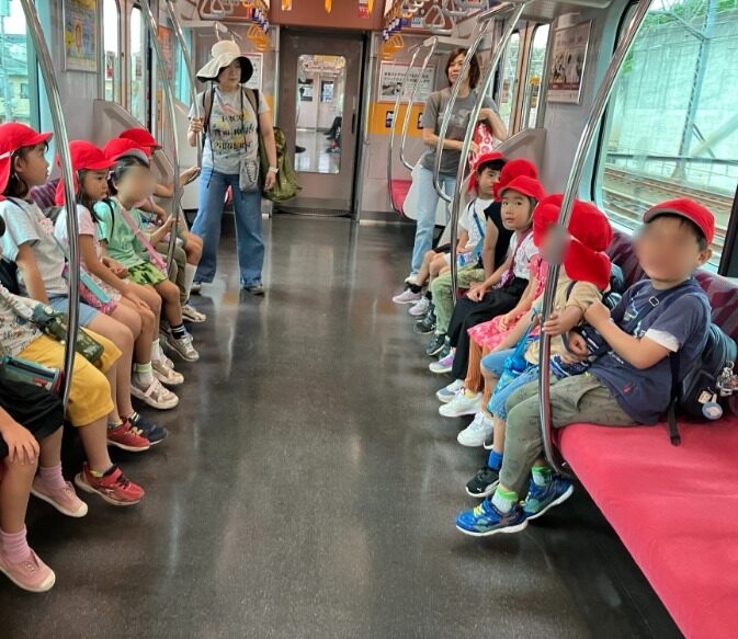 先週、年長組がせせらぎ公園へ行きました。 歩くにはまだ暑いので…多摩川駅まで一駅🚇乗車。