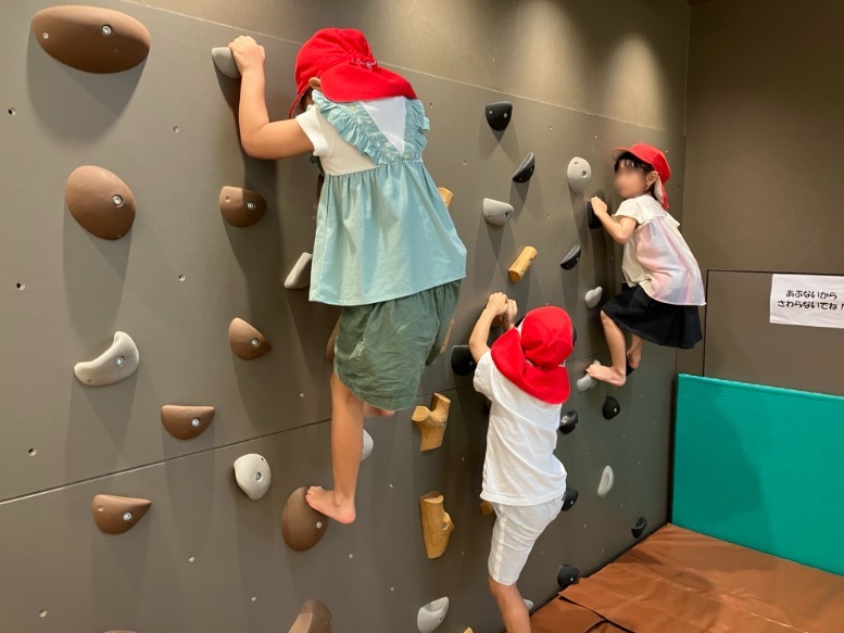 体育館の入り口には、ボルダリングもあり挑戦しました!