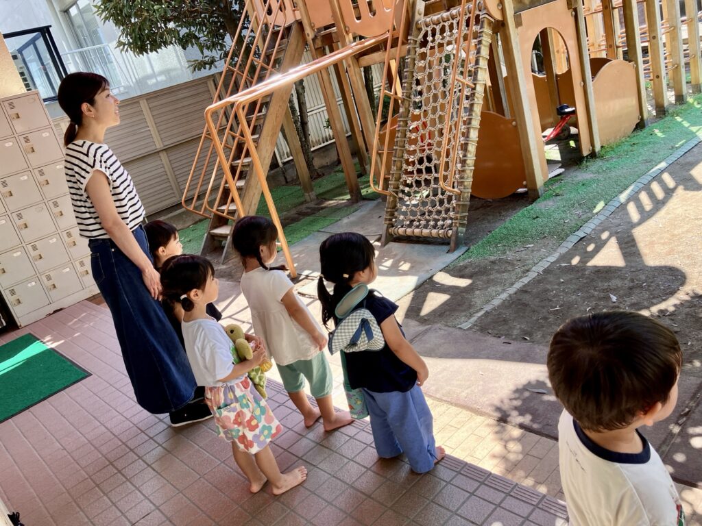 りんご組はテラスで見学🍏 見ているうちに「やりたーい!」と叫んでいました。(笑)