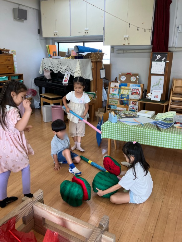 「スイカ割りもやりたい!」ということで、半分に割れるスイカも作っちゃいました🍉