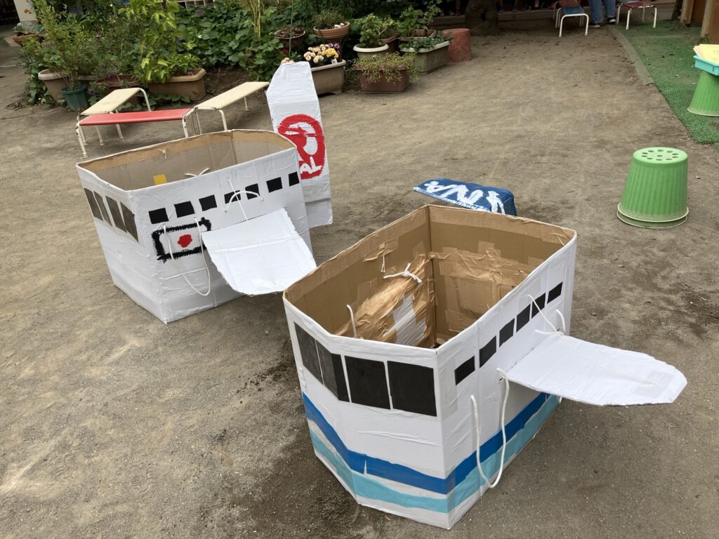 年中組(ばら)は、夏休み明けにクラスで飛行機ごっこが盛り上がりました🛫 そこで、行ってみたい場所へ空の旅をすることになりました🛬 沖縄や大分、アメリカ、ハワイ便がありますよ🎫
