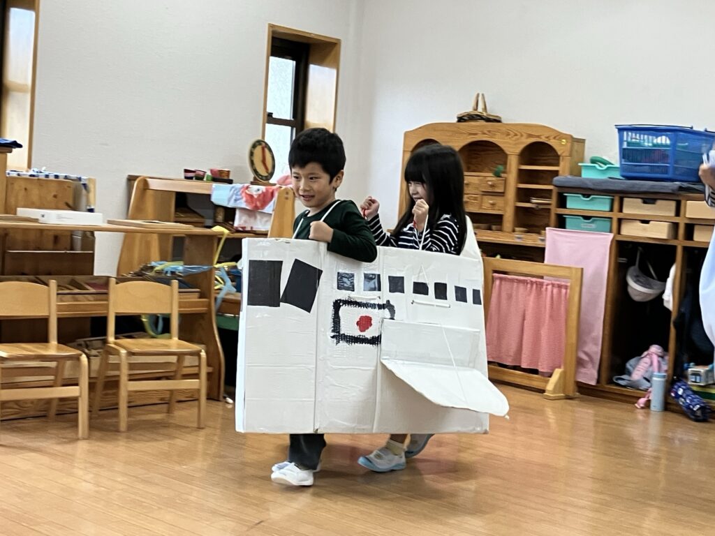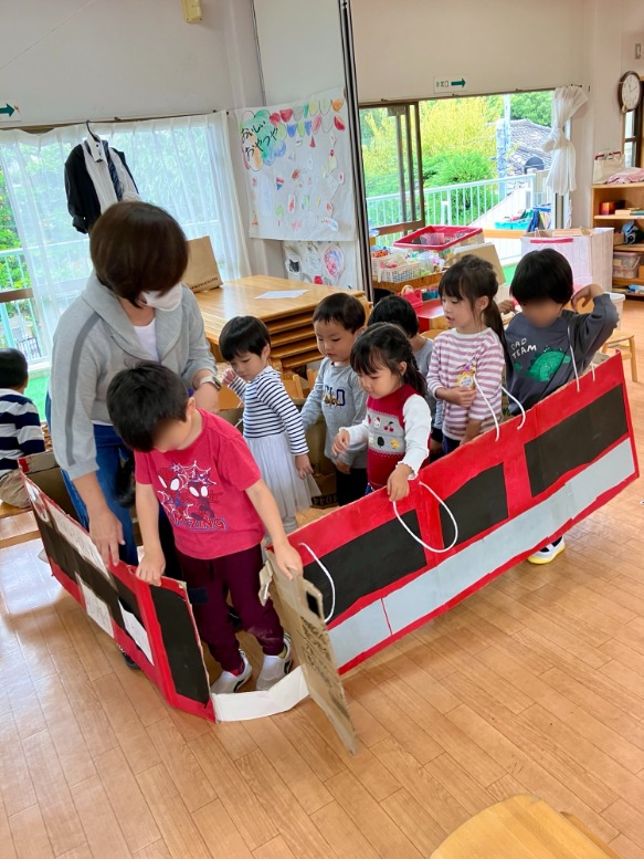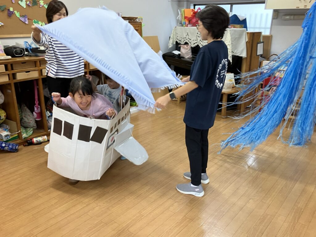 また別の日には、年中組の飛行機に乗ったり、年少組のバスにも乗り、他の学年のプログラムも体験❣️