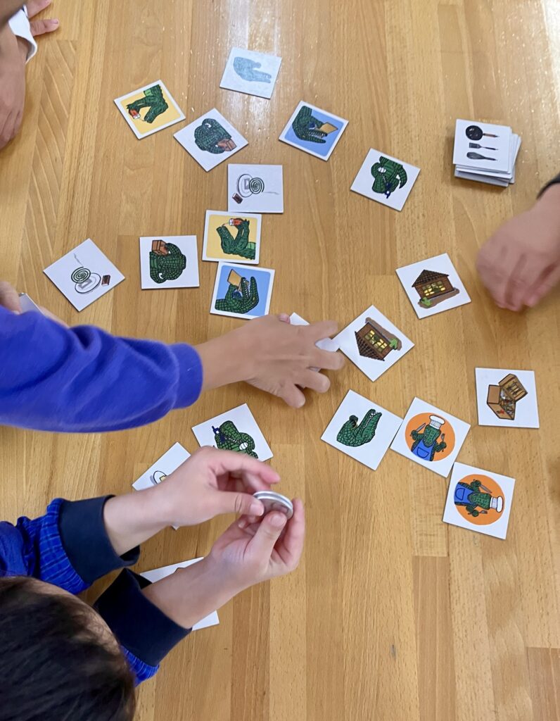 はじめに先生が絵本に出てくる言い回しや絵を見ながら読むと、両手2枚取り👐‼️の技。