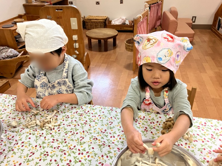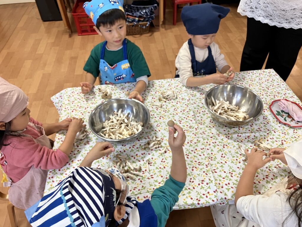 毎日の保育11/13(木)収穫感謝礼拝の後は、各クラスに分かれて翌日のカレーの下準備をしました。