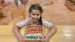 毎日の保育延期日の今日も雨予報のため、サツマイモの苗植えは残念ながら中止となりました。先週から苗植えに行くことを楽しみにしていた子どもたち。お弁当の時間は、自分のレジャーシートを敷いて、テラスや保育室など好きな場所でいただきました。食後にラムネをもらうと「ピクニックみたいだね!」と笑顔がこぼれました。