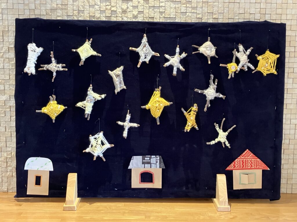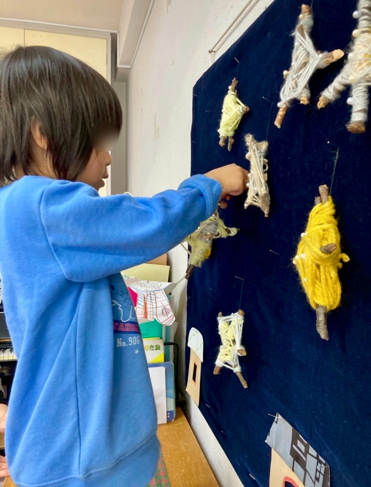 年中:散歩で見つけてきた枝に毛糸を巻いた星🌟