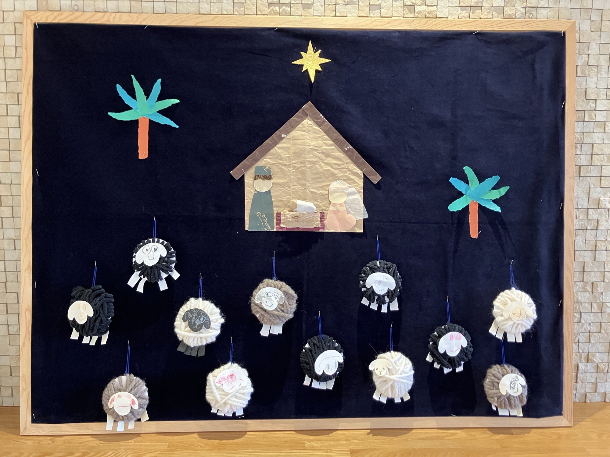 各クラスのアドベントカレンダーがいっぱいになりました。幼稚園では、クリスマス礼拝の日が最後になるように1日1個、飾りました。クリスマスが近づくにつれ、賑やかになるアドベントカレンダーは、「ぼくの番はまだかな? いつかな?」とクリスマスを待つ喜びを経験します。