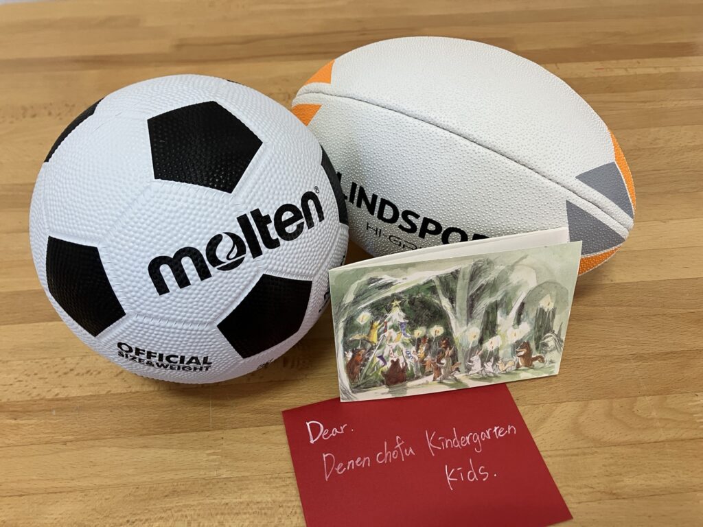 ✨ピカピカ✨のサッカーボール⚽️とラグビーボール🏈が入っていました!サンタさん、ありがとう!
