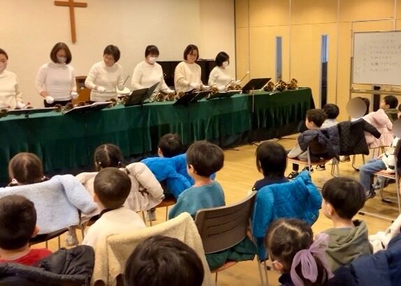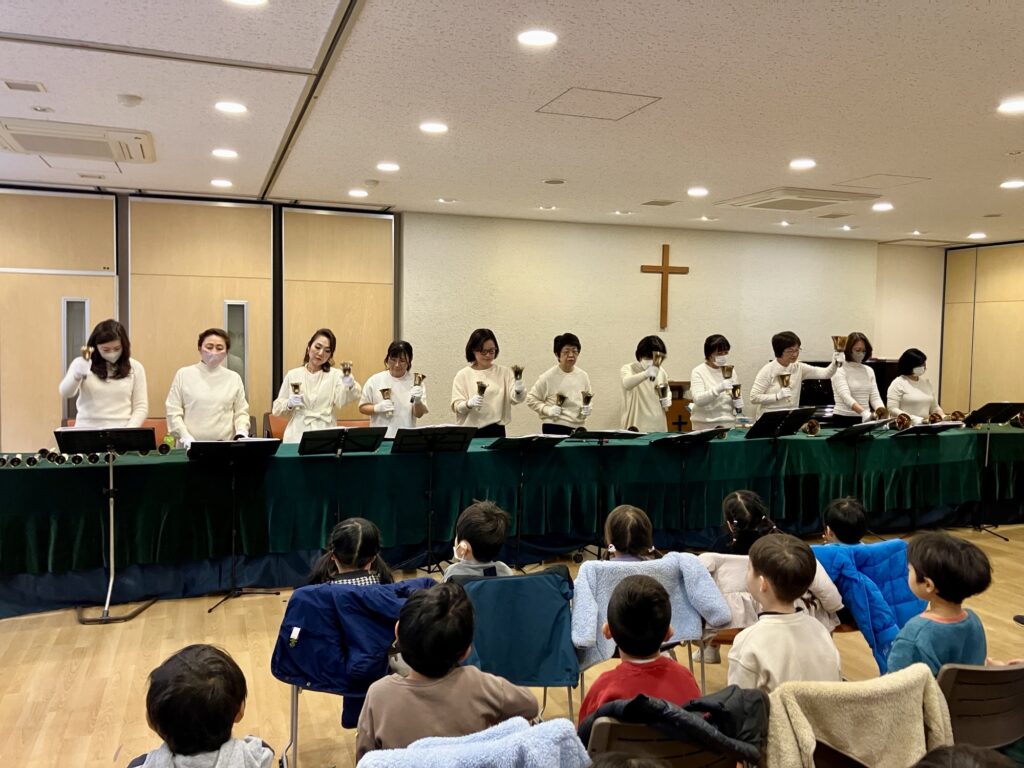 昨日は、マザーグレイス(卒園生母ハンドベルサークル)のハンドベルを聴きに教会へ行きました。今回は年少組も一緒です😊