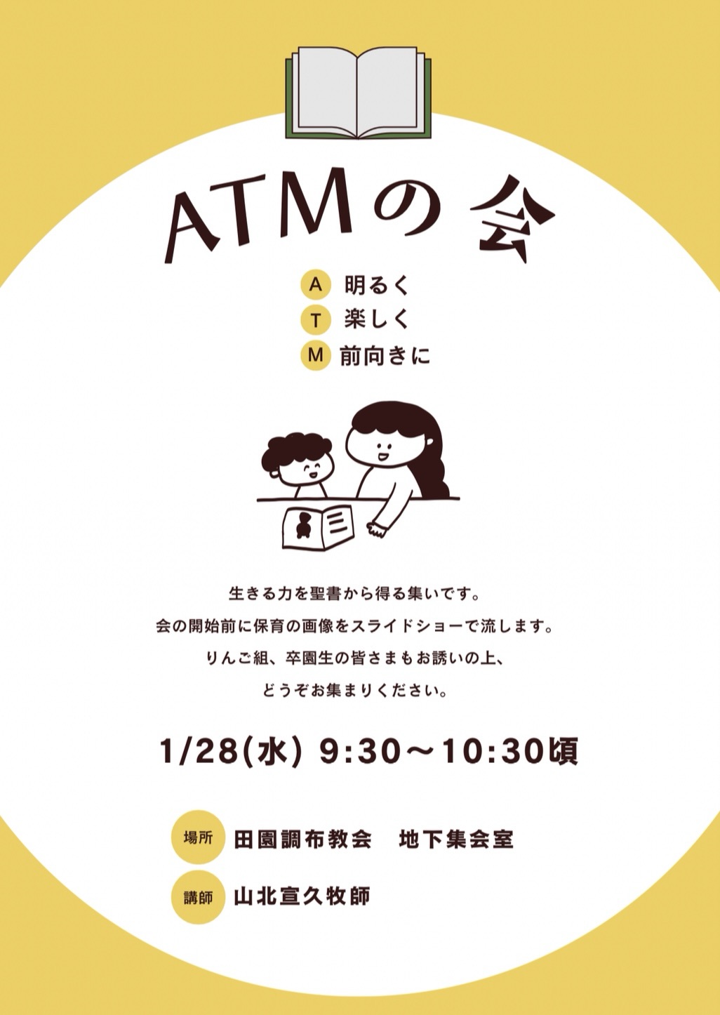 A 明るく! T 楽しく! M 前向きに! 生きる力を聖書から得る集いです😃