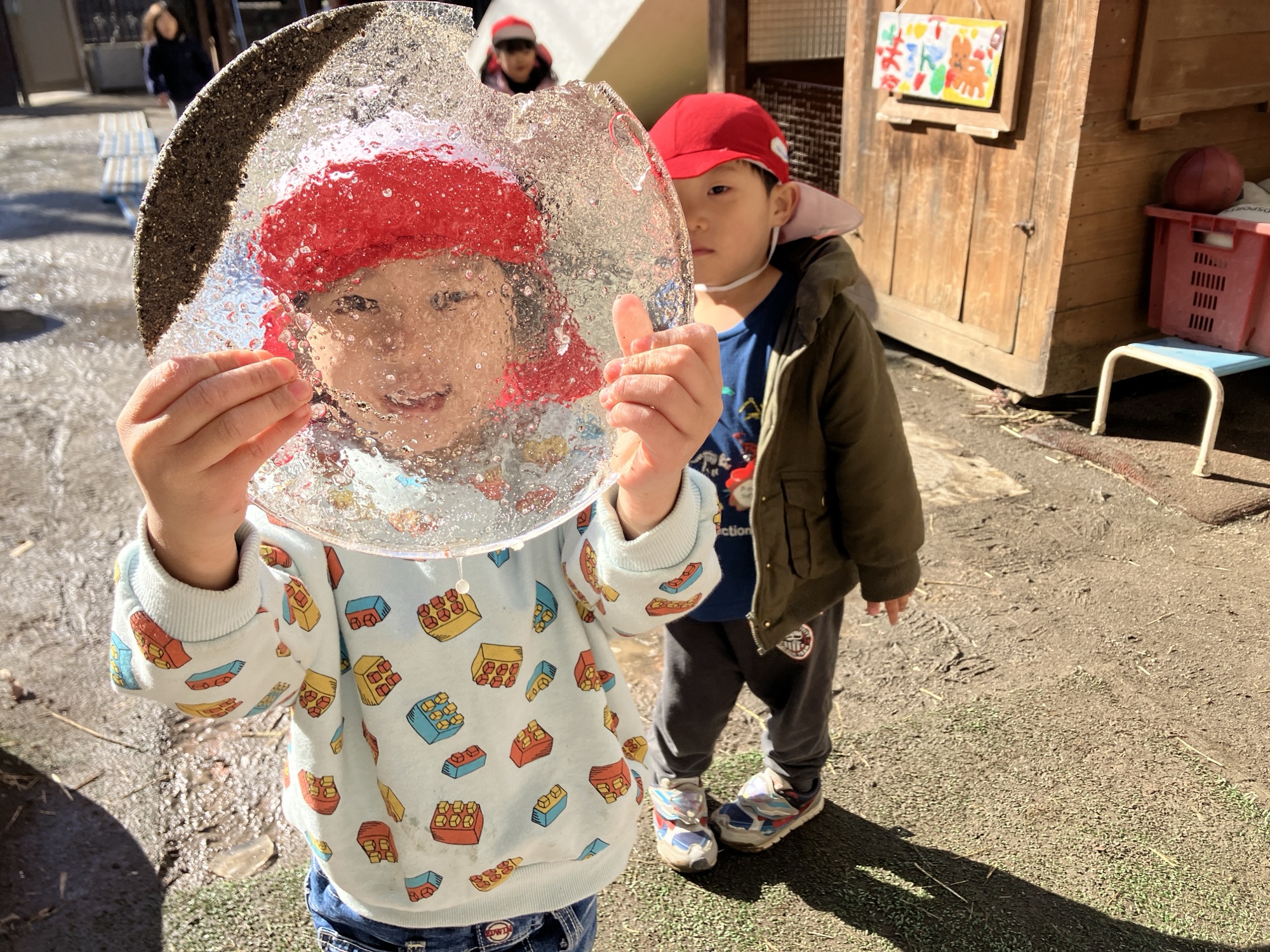 月曜日、朝の園庭は氷🧊探しから始まり、日陰に残っていた雪を集める子、屋根の上の雪をシャベルで取る子、小さなツララを見つけた子👀 ちいさな雪だるまやかき氷を作って、「手が痛い〜😂」と言いながら、普段とは異なる外遊びを満喫しました!