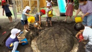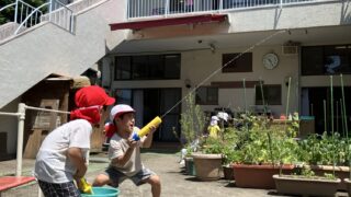夏休み明けから飛行機ごっこがずっと続いていたことから、飛行機でお仕事をされている保護者の方々に協力をしていただき、本格的な飛行機ごっこを楽しみました。乗り込むところから始まり、シートベルトを締め、前方スクリーンに投影されている映像に合わせて...