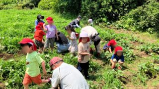 年中組が育てていたマリーゴールドが11月まで良く咲きましたが、冬野菜の苗を植え替えるため、抜くことにしました。すると、年少さんが砂遊び用に置いた花を植え替えていました😊(笑)