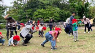 今日は、2歳児(赤りんご組)と満3歳児(青りんご組)の合同ピクニックでした🍙 場所は、多摩川駅の目の前にある『せせらぎ公園』🍁 芝生もあり、自然豊かな公園です。まずはじめに、ちいさな礼拝をまもりました。♪ちから を賛美すると「かみさま げん...