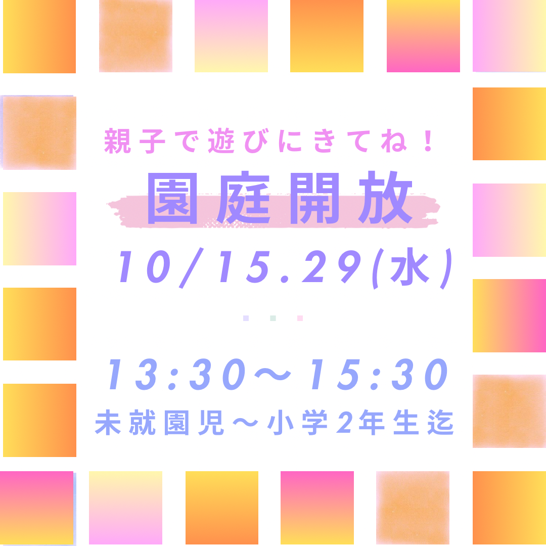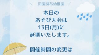 本日予定しておりました「あそび大会」は、13日(月)に延期いたします。延期日|10月13日(月)実施時間|9:30~12:30頃場所|多摩川台公園・第一広場(管理事務所前)🔶未就園児のかけっこ11:00頃、小学生プログラム12:00頃の予定...