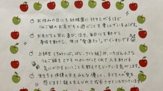 お知らせ 「2歳児クラス(りんご組)🍎」ってこんなところ!② 今年度、入会された保護者の方に「2歳児クラス(りんご組)」はどんなところ!?とお聞きしました。2026年度満3歳児クラスを探されている方、当園のりんご組を検討されている方はご参考になさってください🍎当園では、3歳の誕生日を迎えられた翌月より... 2025.12.14 お知らせ